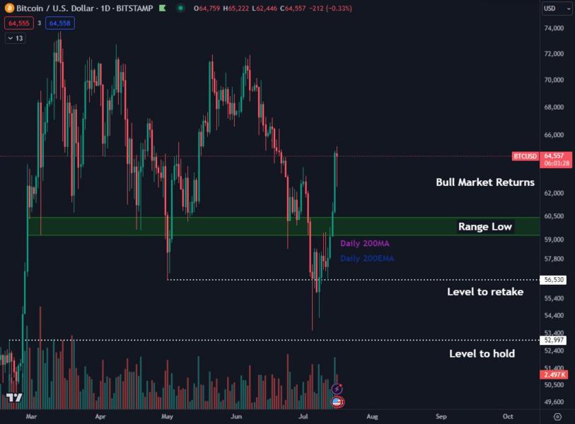 Mt. Gox’a bağlı coinlerin hareketinden kaynaklanan satış tarafı baskısının ardından BTC, 12 Temmuz’daki yükseliş trendinin başlangıcından itibaren ölçüldüğünde yüzde 15 yükseldi.